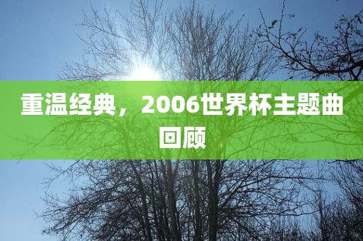 摘要:本文将带您重温经典,回顾2006年世界杯的主题曲。作为足球盛事的标志之一,世界杯主题曲不仅代表着当时的文化和潮流,更是全球球迷的共同回忆。本文将介绍那首令人难以忘怀的主题曲,带您重温那个激情四溢的夏天。