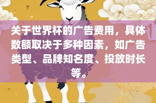 关于世界杯的广告费用,具体数额取决于多种因素,如广告类型、品牌知名度、投放时长等。
