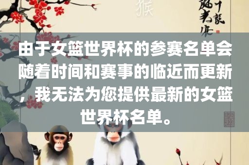 建议您关注相关的体育新闻网站或官方体育网站,以获取最新和准确的女篮世界杯名单,这些网站通常会及时更新并发布有关参赛队伍和球员的最新信息,您也可以关注相关的社交媒体账号,以获取最新的体育资讯和更新。